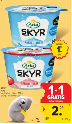 | 2 | Arla Skyr 200 g 1+1 GRATIS | Carrefour Market | € 4,98 | € 2,29 | 1+1 GRATIS | 22 april 2026 | 28 april 2026 | Bekijk aanbieding | |