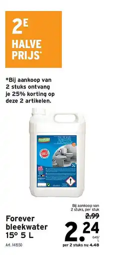 | Forever bleekwater 15° 5 liter | GAMMA | € 2,99 | € 2,24 | € 0,75 Korting | 03 februari 2026 | 10 februari 2026 | |