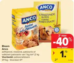 | 2 | Bloem Anco 2 x 1 kg | Carrefour Market | € 2,24 | € 1,79 | 2e voor -40% | 28 januari 2026 | 03 februari 2026 | Bekijk aanbieding | |