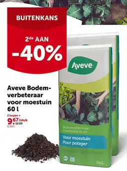| Aveve Bodemverbeteraar voor moestuin 60 l | AVEVE | € 12,09 | € 9,67 | € 2,42 Korting | 22 april 2026 | 03 mei 2026 | |