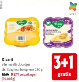 | 1 | Olvarit spaghetti bolognese 920 g 3+1 gratis | Colruyt | € 12,76 | € 9,57 | 3+1 gratis | 25 februari 2026 | 10 maart 2026 | Bekijk aanbieding | |