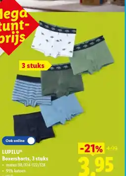 | 4 | Lupilu boxershorts | Lidl | € 4,99 | € 3,95 | € 1,04 Korting | 13 april 2026 | 18 april 2026 | Bekijk aanbieding | |