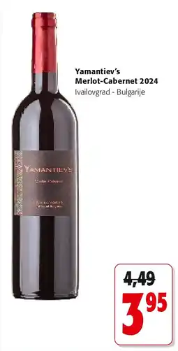 | 2 | Yamantiev’s Merlot-Cabernet 2024 | Colruyt | € 4,49 | € 3,95 | € 0,54 Korting | 02 januari 2026 | 13 januari 2026 | Bekijk aanbieding | |