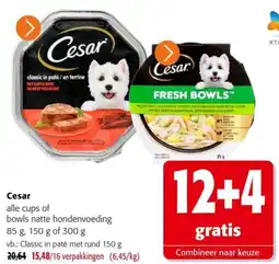 | Cesar Classic in paté met rund 150 g | Colruyt | € 20,64 | € 15,48 | € 5,16 Korting | 08 april 2026 | 21 april 2026 | |
