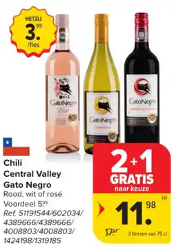 | 2 | Chili Central Valley Gato Negro 75 cl 2+1 GRATIS | Carrefour Market | € 17,97 | € 11,98 | 2+1 GRATIS | 18 februari 2026 | 16 maart 2026 | Bekijk aanbieding | |