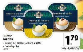 | Granita waterijs met amandel, citroen of koffie | Lidl | € 1,79 | 26 juli 2021 | 02 augustus 2021 | |||