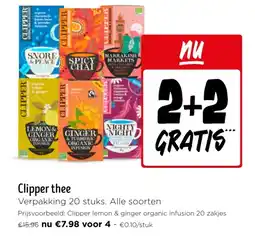| 1 | Clipper thee 2+2 gratis | Jumbo | € 15,96 | € 7,98 | 2+2 gratis | 14 januari 2026 | 20 januari 2026 | Bekijk aanbieding | |