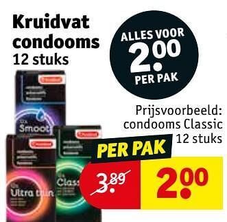 | Kruidvat condooms Classic | Kruidvat | € 7,98 | € 3,99 | € 3,99 Korting | 21 oktober 2025 | 02 november 2025 | |