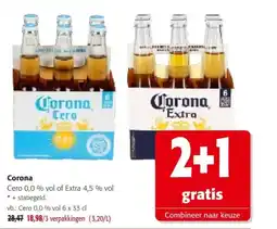 1Carrefour Bier Corona Extra of Corona 0,0% aanbiedingBier Corona Extra of Corona 0,0% 3 x (6 x 33 cl) 2+1 gratisCarrefour€ 27,27€ 18,182+1 gratis11 februari 202623 februari 2026 Bekijk aanbieding