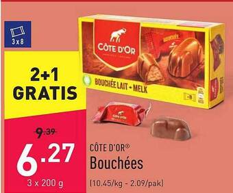 | Cote d'or Minibouchees, 13 st. 122g | ALDI | € 2,75 | 13 september 2021 | 18 september 2021 | |||