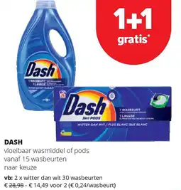 | Vloeibaar wasmiddel, poeder en caps Dash | Carrefour | € 57,96 | € 28,98 | € 28,98 Korting | 07 januari 2026 | 19 januari 2026 | |