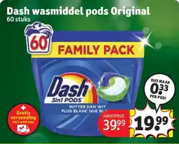 | Dash wasmiddel pods Original | Kruidvat | € 39,99 | € 19,99 | € 20,00 Korting | 08 juli 2025 | 20 juli 2025 | |
