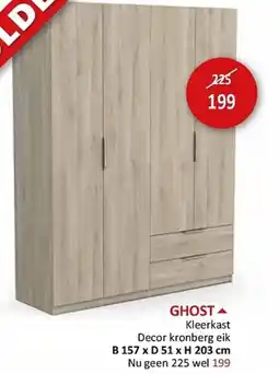 | 4 | Ghost Kleerkast Decor kronberg eik 157 x 51 x 203 cm | Weba | € 225,00 | € 199,00 | € 26,00 Korting | 03 januari 2026 | 31 januari 2026 | Bekijk aanbieding | |