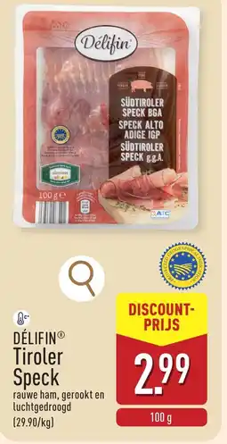 | Délifin Tiroler Speck IGP 100 G | ALDI | € 2,99 | 27 november 2024 | 31 december 2024 | |||