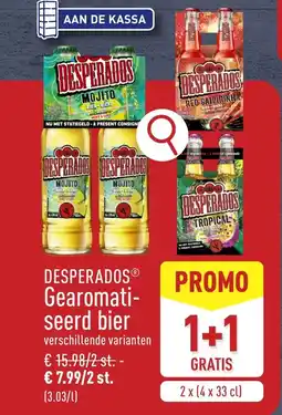 | Desperados gearomati seerd bier 2X4X33 CL 1+1 GRATIS | ALDI | € 15,98 | € 7,99 | 1+1 GRATIS | 04 mei 2026 | 09 mei 2026 | |