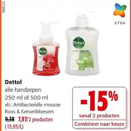 | Dettol Antibacteriële mousse Roos & Kersenbloesem | Colruyt | € 9,38 | € 7,97 | € 1,41 Korting | 11 maart 2026 | 24 maart 2026 | |