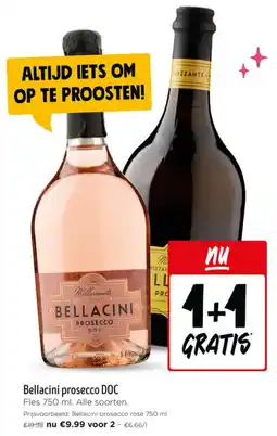| 2 | Bellacini prosecco DOC 750 ml 1+1 gratis | Jumbo | € 19,98 | € 9,99 | 1+1 gratis | 01 april 2026 | 07 april 2026 | Bekijk aanbieding | |