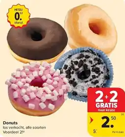 | Donuts 4 stuks 2+2 gratis | Carrefour | € 5,00 | € 2,50 | 2+2 gratis | 14 januari 2026 | 20 januari 2026 | |
