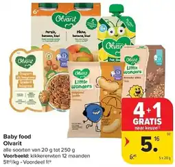 | 2 | Baby food Olvarit 5 x 20 g 4+1 gratis | Carrefour | € 6,45 | € 5,16 | 4+1 gratis | 14 januari 2026 | 20 januari 2026 | Bekijk aanbieding | |