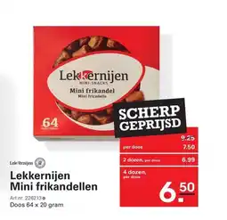 Sligro Lekkernijen mini frikandellen aanbiedingLekkernijen mini frikandellen 64x20 gramSligro€ 9,25€ 6,50€ 2,75 Korting09 april 202627 april 2026