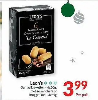 | Leon's Garnaalkroketten 60 g x 6 | Intermarché | € 7,49 | € 5,49 | € 2,00 Korting | 18 december 2025 | 31 december 2025 | |