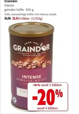 | 3 | Graindor Intense gemalen koffie 500 g | Colruyt | € 31,76 | € 25,41 | € 6,35 Korting | 11 februari 2026 | 24 februari 2026 | Bekijk aanbieding | |