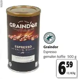 | Graindor gemalen koffie 500 g | Colruyt | € 27,12 | € 21,70 | € 5,42 Korting | 14 januari 2026 | 27 januari 2026 |