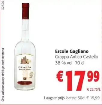 | Ercole Gagliano Grappa Antico Castello 38 % vol 70 cl | Colruyt | € 17,99 | 03 december 2025 | 16 december 2025 | |||