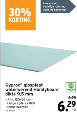 | Gyproc gipsplaat waterwerend Handyboard dikte 9,5 mm | GAMMA | € 8,79 | € 6,15 | € 2,64 Korting | 22 oktober 2025 | 04 november 2025 | |