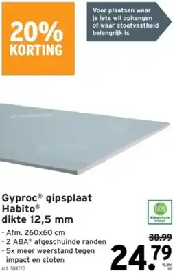 | Gyproc gipsplaat Habito | GAMMA | € 28,49 | € 22,79 | € 5,70 Korting | 05 november 2024 | 12 november 2024 | |