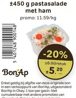 | 6 | Pastasalade met ham 450 g | Bon Ap | € 6,50 | € 5,20 | -20% | 01 april 2026 | 28 april 2026 | Bekijk aanbieding | |