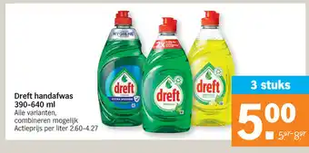 | Dreft handafwas 390-640ml | Albert Heijn | € 5,97 | € 5,00 | € 0,97 Korting | 23 augustus 2021 | 29 augustus 2021 | |