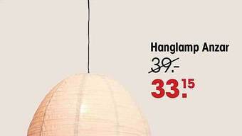 | Hanglamp anzar | Kwantum | € 39,00 | € 19,50 | € 19,50 Korting | 16 oktober 2023 | 05 november 2023 | |