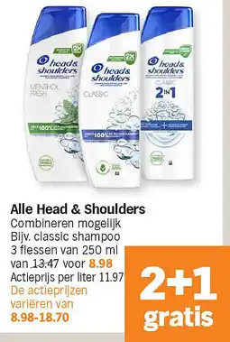 | Head & Shoulders Classic shampoo 250 ml 2+1 gratis | Albert Heijn | € 6,99 | 2+1 gratis | 20 april 2026 | 26 april 2026 | ||