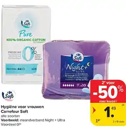 | Hygiëne voor vrouwen Carrefour Soft | Carrefour | € 1,98 | € 1,49 | € 0,49 Korting | 07 januari 2026 | 19 januari 2026 | |