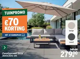 | 3 | Zweefparasol Ibiza zwart of beige | GAMMA | € 349,00 | € 279,00 | € 70,00 Korting | 08 april 2026 | 21 april 2026 | Bekijk aanbieding | |