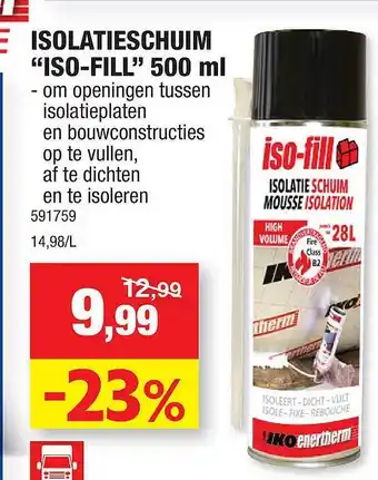 | ISOLATIESCHUIM "ISO-FILL" 500 ml | Hubo | € 14,09 | € 10,99 | € 3,10 Korting | 06 november 2023 | 19 november 2023 | |