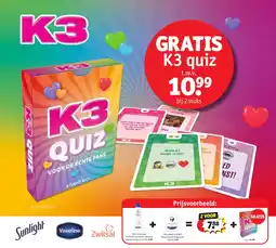 | 3 | K3 quiz | Kruidvat | € 10,99 | 28 april 2026 | 10 mei 2026 | Bekijk aanbieding | |||