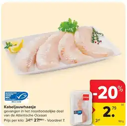 | Kabeljauwhaasje 100 G | Hyper Carrefour | € 3,29 | € 2,45 | € 0,84 Korting | 19 november 2025 | 01 december 2025 | |
