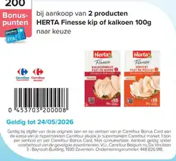 | 3 | Herta finesse kip of kalkoen 100 G | Carrefour | 27 april 2026 | 24 mei 2026 | Bekijk aanbieding | ||||