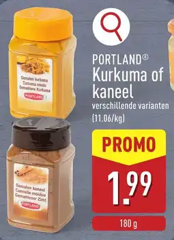 | 1 | Portland kurkuma of kaneel 180 g | ALDI | € 1,99 | 02 maart 2026 | 07 maart 2026 | Bekijk aanbieding | |||