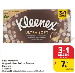 | Set zakdoeken Original, Ultra Soft of Balsam Kleenex | Carrefour | € 7,70 | 21 januari 2026 | 02 februari 2026 | |||