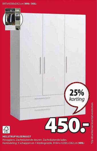 | Kleerkast | Jysk | € 499,00 | € 400,00 | € 99,00 Korting | 03 januari 2024 | 31 januari 2024 | |