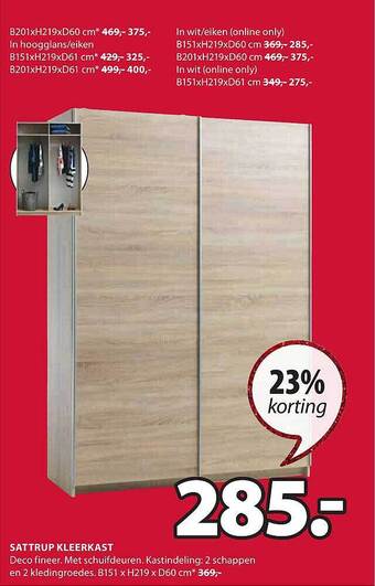 | Kleerkast | Jysk | € 699,00 | € 550,00 | € 149,00 Korting | 30 oktober 2023 | 05 november 2023 | |