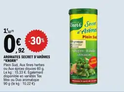 | Aromates secret d'arômes knorr 60 g | E.Leclerc | € 1,32 | € 0,92 | -30% | 30 december 2025 | 10 januari 2026 | |