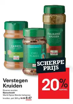 | 1 | Verstegen Kruiden 300 g | Sligro | € 10,59 | € 8,47 | 20% KORTING | 05 januari 2026 | 26 januari 2026 | Bekijk aanbieding | |