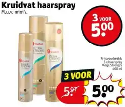 | 2 | Kruidvat Haarspray 400 ml | Kruidvat | € 5,97 | € 5,00 | € 0,97 Korting | 06 januari 2026 | 18 januari 2026 | Bekijk aanbieding | |