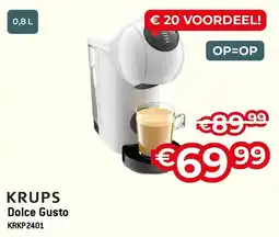 | 1 | Krups Dolce Gusto KRKP2401 0,8 L | Exellent | € 89,99 | € 69,99 | € 20,00 Korting | 02 maart 2026 | 15 maart 2026 | Bekijk aanbieding | |