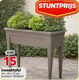 | 1 | Kweektafel 80 x 40 x 75 cm | Yess | € 17,99 | € 15,00 | € 2,99 Korting | 24 maart 2026 | 20 april 2026 | Bekijk aanbieding | |