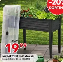 | KWEEKTAFEL MET DEKSEL 81 x 37,7 x 78 cm | Hubo | € 39,99 | € 27,99 | € 12,00 Korting | 18 maart 2026 | 29 maart 2026 | |